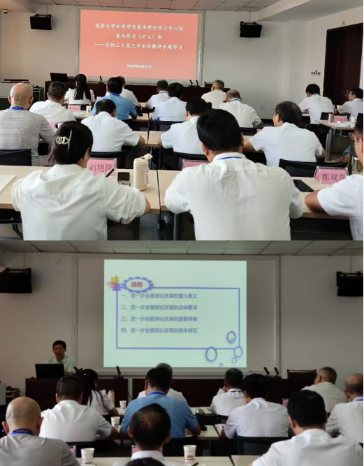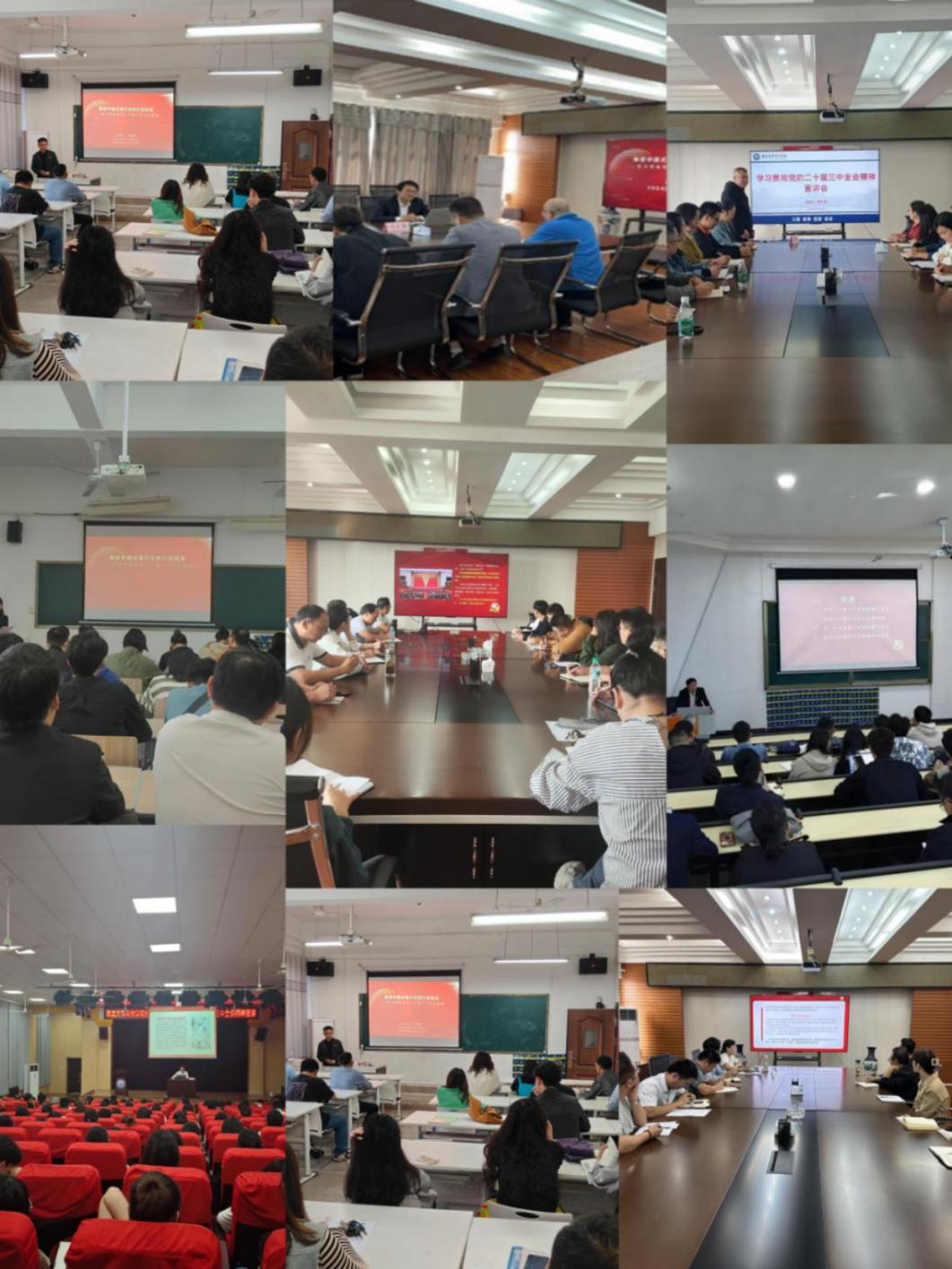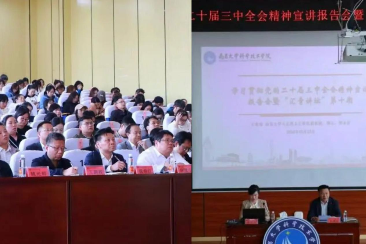 党的二十届三中全会是在以中国式现代化全面推进强国建设、民族复兴伟业的关键时期召开的一次十分重要的会议。为深入学习宣传党的二十届三中全会精神,推动全会精神在学院生根发芽、落地见效,学校党委高度重视、科学谋划、周密部署、全方位覆盖,在全校范围内分层分类地开展了一场场振奋人心的全会精神宣讲活动,引导全校广大党员干部和师生员工把思想和行动统一到党的二十届三中全会精神上来,把力量凝聚到全会确定的各项任务上来,齐心协力书写好建设特色鲜明的区高水平应用型本科院校建设的奋进之笔。