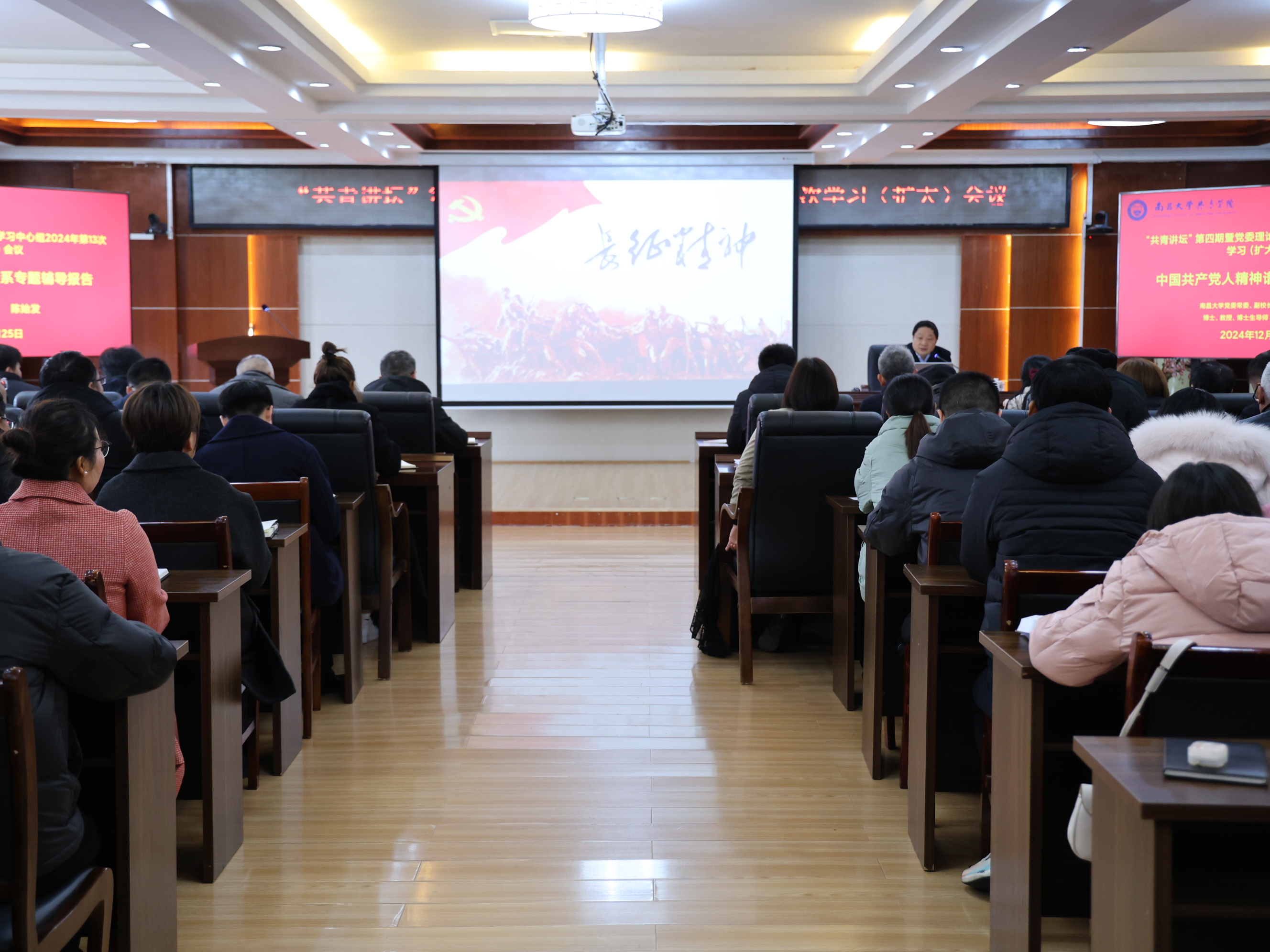 2024年是新中国成立75周年,也是红军长征出发90周年,为深入学习贯彻党的二十届三中全会精神和习近平总书记关于传承红色基因的重要指示批示精神,贯彻落实教育部办公厅等四部门关于开展全国高校“传承红色基因、学思践悟中国共产党人精神谱系”宣传教育的通知要求,大力弘扬以伟大建党精神为源头的中国共产党人精神谱系,学院举办“共青讲坛”第四期暨党委理论学习中心组第13次扩大会议。会议特邀全国高校“中国共产党人精神谱系”宣讲团专家、高校思想政治理论课教师影响力标兵人物、南昌大学党委常委、副校长陈始发教授做专题报告。全体在家院领导出席会议。会议由学院行政主要负责人匡晟主持。