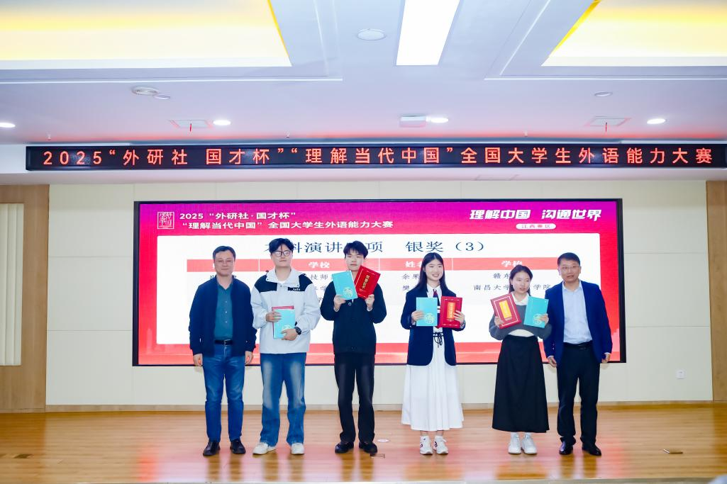 近日,2025“外研社·国才杯”“理解当代中国”全国大学生外语能力大赛江西赛区省级复赛于江西中医药大学(湾里校区)顺利举行,也标志着我省“外研社·国才杯”系列赛事的圆满落幕。南昌大学共青学院的学子在本次大赛中表现出色,在本科组综合能力赛项、短视频、演讲和高职组演讲及写作等各项赛事中共获得了11项奖项,其中金奖1项,银奖8项、铜奖2项(具体名单如下)。其中,23英本1班汪雨欣同学将代表江西省参加综合能力赛项国赛。
