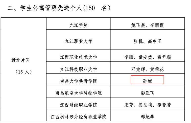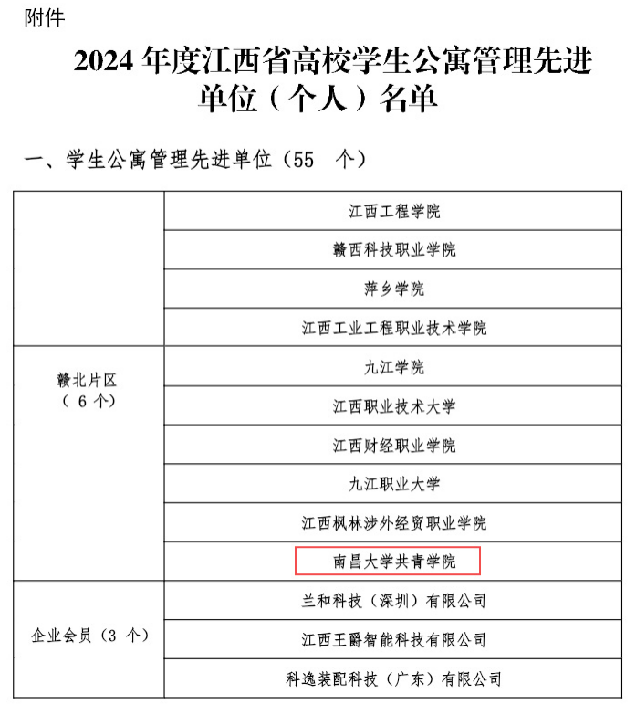 2025年10月,江西省高校后勤协会学生公寓管理专业委员会发布了《关于表彰2024年江西省高校学生公寓管理先进单位(个人)的决定》,我院荣获2024年“学生公寓管理先进单位”荣誉称号,孙斌老师荣获2024年“学生公寓管理先进个人”荣誉称号!